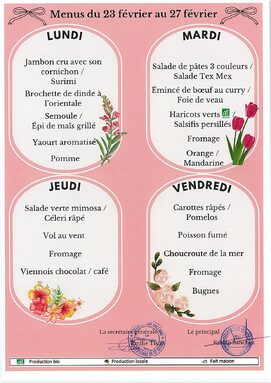 Menus du 23 au 27 février 2026