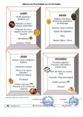 Menus du 6 au 10 octobre 2025