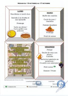 Menus du 13 au 17 octobre