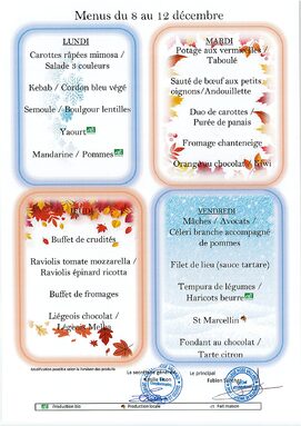 Menus du 8 au 12 décembre 2025