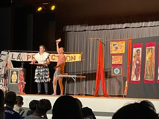Le vendredi 6 mars, juste en amont de La journée internationale des droits des femmes, toutes les classes de 4e ont assisté au spectacle La mécanique des fluides, proposé par la compagnie Fil rouge. Adapté pour un public de collégiens, ce projet est financé par le Pass Culture et s’inscrit en lien avec les programmes de SVT et d’EVARS (Éducation à la vie affective, relationnelle et à la sexualité).